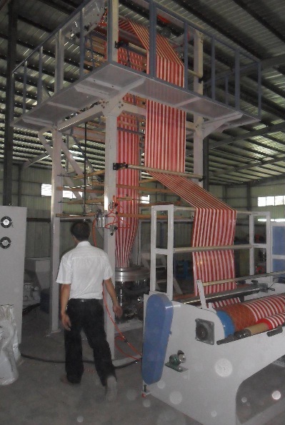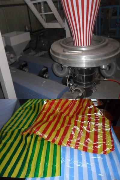雙色彩條吹膜機用于吹制各種低密度聚乙烯(LDPE)、高密度聚乙烯(HDPE)彩條塑料薄膜。廣泛應用于食品、水果、服裝、紡織品、日用品等民用及工業(yè)品包裝,無需經(jīng)過印刷就能達到彩色化。